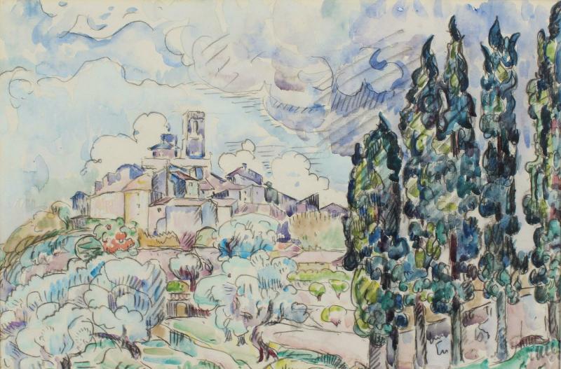 Paul Signac, maître du pointillisme et co-fondateur du néo-impressionnisme avec Georges Seurat, est l’un des premiers artistes à avoir capturé la magie de Saint-Paul-de-Vence dès les années 1920-1930. Attiré par la lumière exceptionnelle et les couleurs provençales du village perché, il y a réalisé plusieurs œuvres, dont un paysage emblématique vers 1921 (aquarelle et crayon, conservé à l’Albertina de Vienne) et un dessin daté autour de 1930 (au Centre Pompidou). Ces vues vibrantes des remparts, des collines et du bourg médiéval, traitées en touches pointillées et couleurs pures, ont contribué à faire connaître Saint-Paul comme un paradis pour les peintres bien avant l’arrivée des grands noms du XXe siècle.