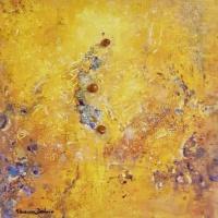 Abstract painting on canvas, painting worked with reliefs. Dominant tones yellow orange .