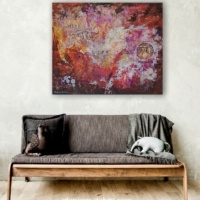 Pompei – large red silver gold abstract painting is a large abstract painting inspired by the frescoes of the city. The dominant colors of this contemporary canvas are red, black, silver and gold. Pompeii is an ancient city located in the Italian region of Campania. She is famous for having been buried during an eruption of vesuvius. Pompeii is a city with an astonishing state of preservation. walking through it, you can have the feeling of being in a city that is still inhabited, since buildings and most of the decoration of the houses are still preserved. This picture will bring a mysterious note to your decoration.