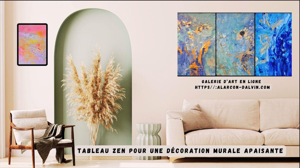 Un tableau zen évoque la paix, la nature, la respiration, le silence. Il ne s’agit pas d’un style rigide, mais d’une sensation. Ce peut être une toile minimaliste, une abstraction fluide, une palette de couleurs douces, des matières qui suggèrent la lenteur et la profondeur.
